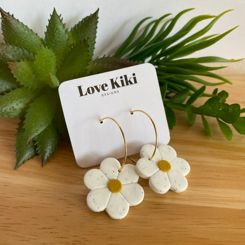 Daisy white clay hoop earrings