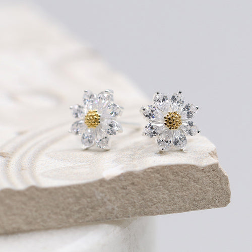 Flower Studs - sterling silver with CZ and gold plated centre