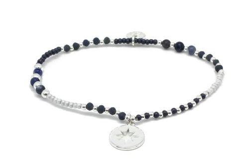 Flute Navy & Grey Gemstone Stretch Bracelet