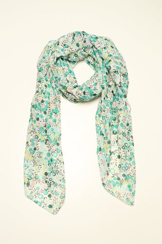 Green Ditsy Floral Print Scarf With Metallic Spots