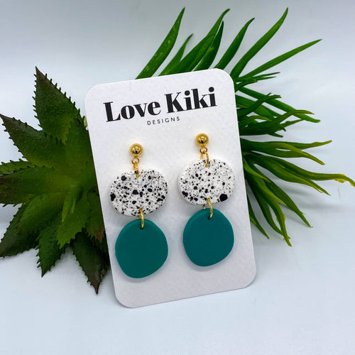 Green & Speckled White Clay Drop Earrings