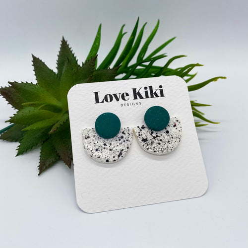 Green & White Speckled Statement Stud Earrings