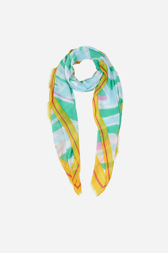 Green, Blue & Mustard Abstract Splash Print Scarf
