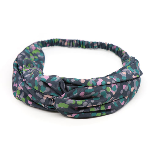 Grey pink and green spots knotted stretch hair band