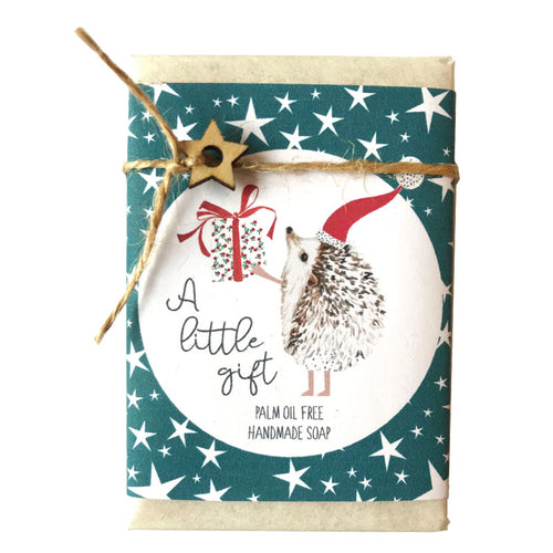 A little gift, hedgehog in hat, tea tree and turmeric scented handmade soap bar