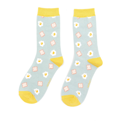 Ladies bamboo Christmas socks Snowman Stripes duck egg