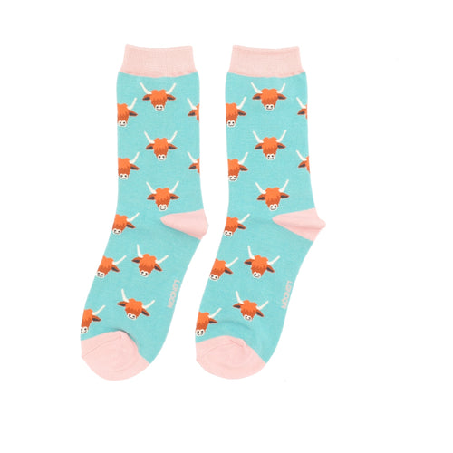 Ladies bamboo socks Highland cow duck egg