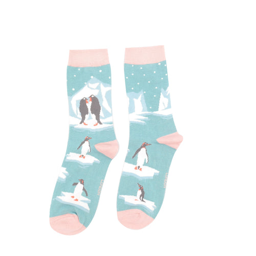 Ladies bamboo socks Penguins on ice duck egg
