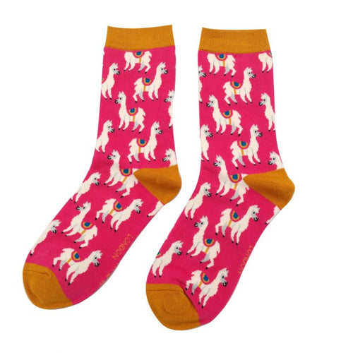 Llama Alpaca ladies socks bright pink