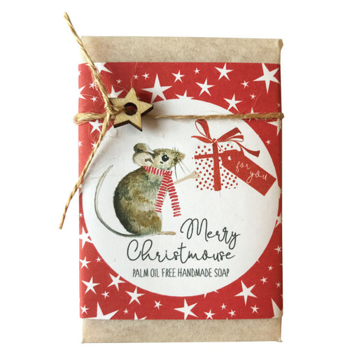 Merry Christmas, mouse and gift, orange & grapefruit scented handmade soap bar