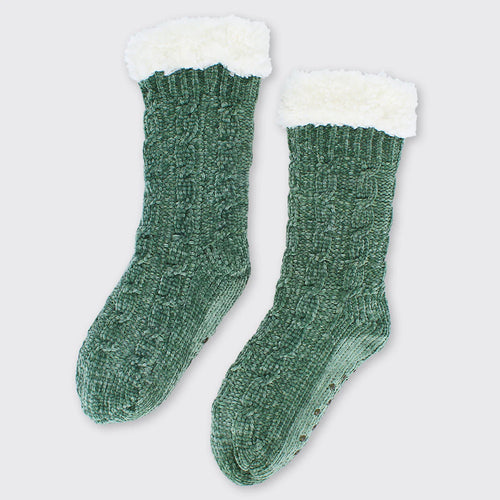 Molly Ladies Chenille Slipper Socks - Duck Egg