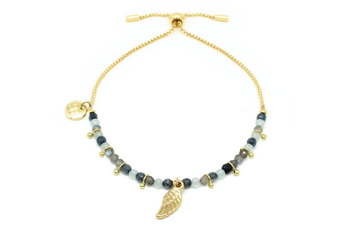 Nashira Denim & Gold Angel Wing Charm Gemstone Bracelet