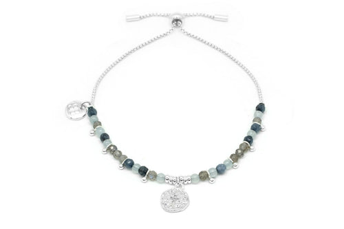 Nashira Denim & Silver Battered Charm Gemstone Bracelet