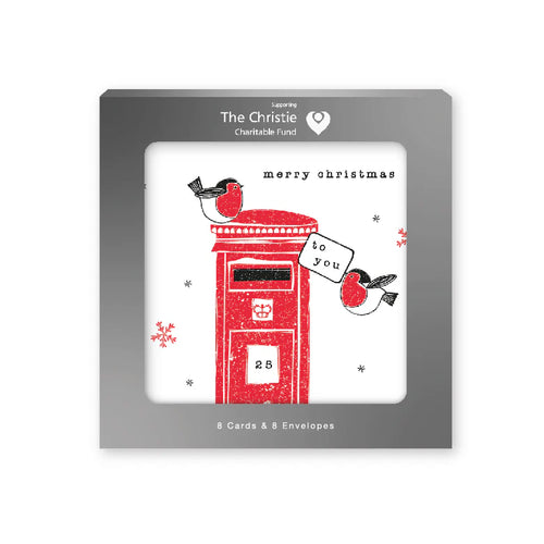 Pack of 8 Charity Christmas Cards - Post Box Robins