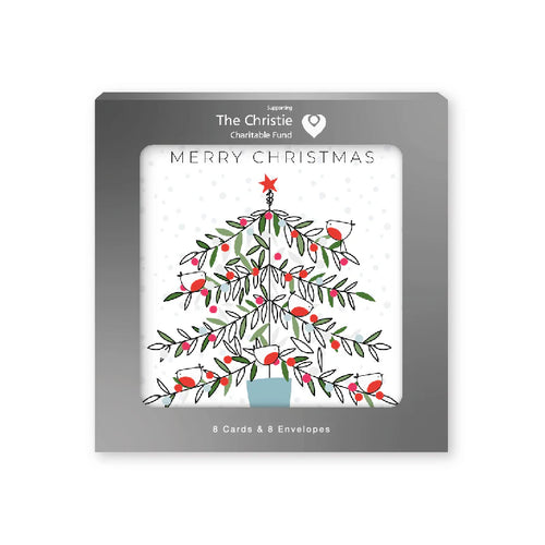 Pack of 8 Charity Christmas Cards - Robins on Christmas Tree