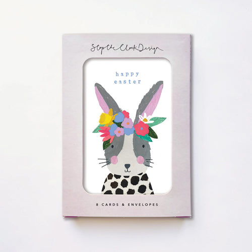 Pack of 8 cards - easter bunny in floral headband