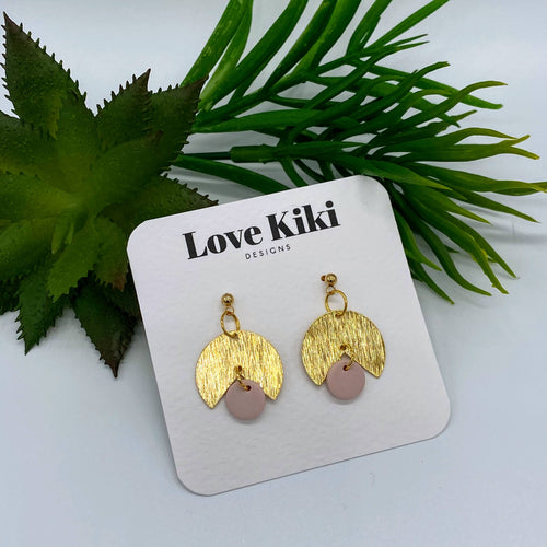 Pale Pink Clay & Brass Drop Earrings