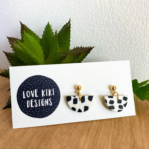 Small Clay Drop Earrings - white and black
