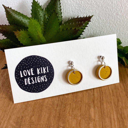 Small Clay Drop Earrings - mustard circles