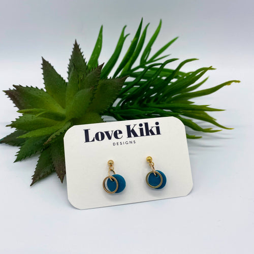 Small Clay Drop Earrings - teal circles