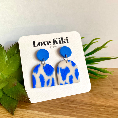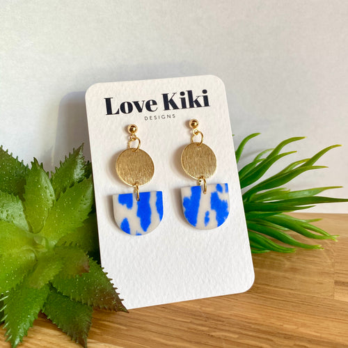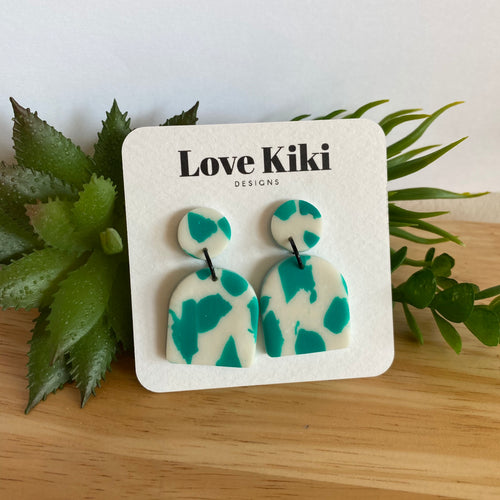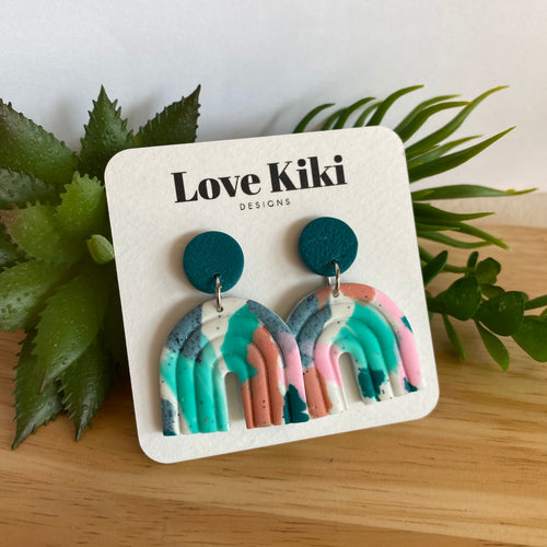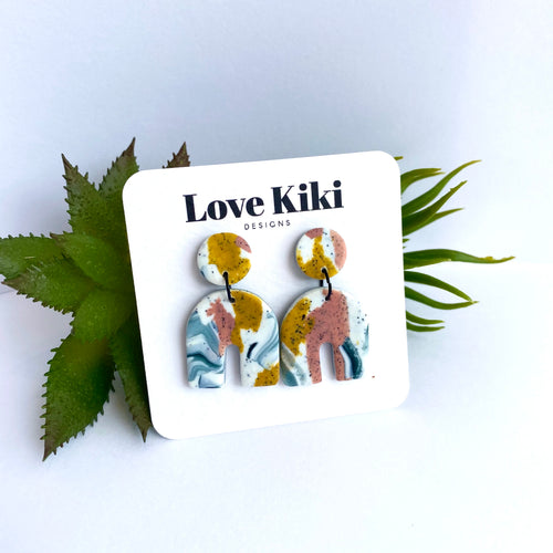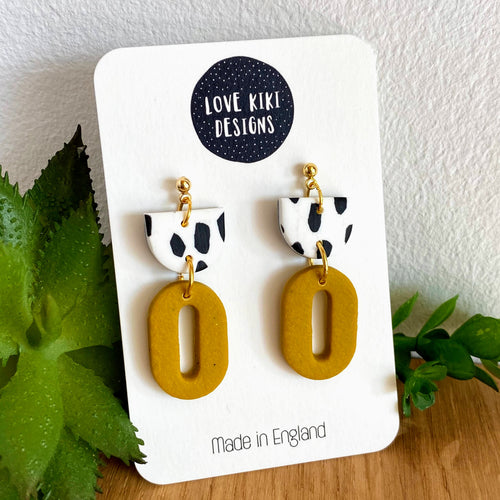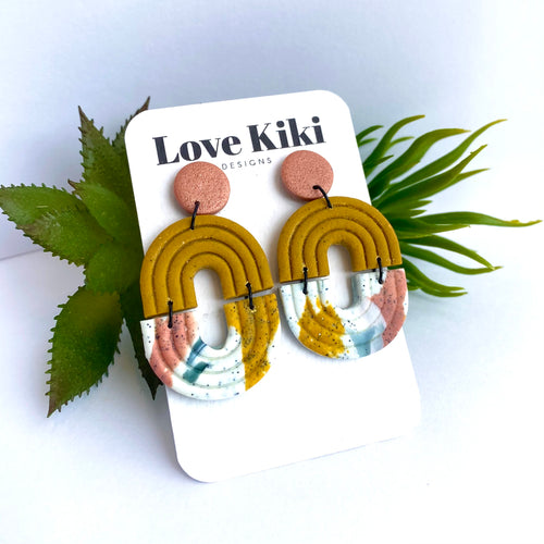 Statement Clay Drop Earrings - 3 part mustard and pink