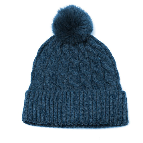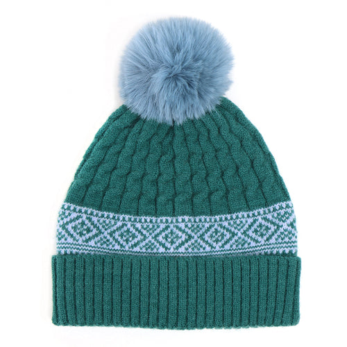 Teal Cable Knit and Fair Isle Hat