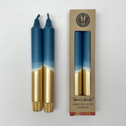 Teal blue and gold dip dyed dinner candles