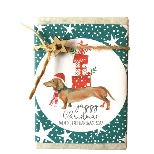 Yappy Christmas, dachshund - patchouli and sandalwood scented handmade soap bar