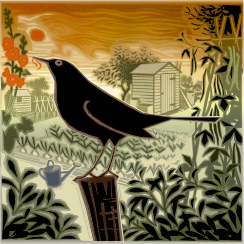 Blackbird With Blue Flowers Blank Card