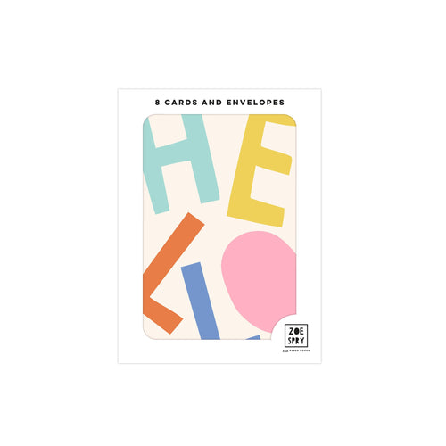 Boxed pack of 8 Mini Cards 'HELLO' typographic card pack