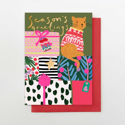 Cat on Presents Christmas card
