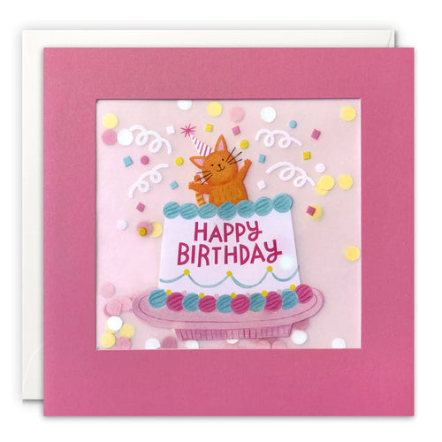 Cat in Birthday Cake Paper Shakies Card