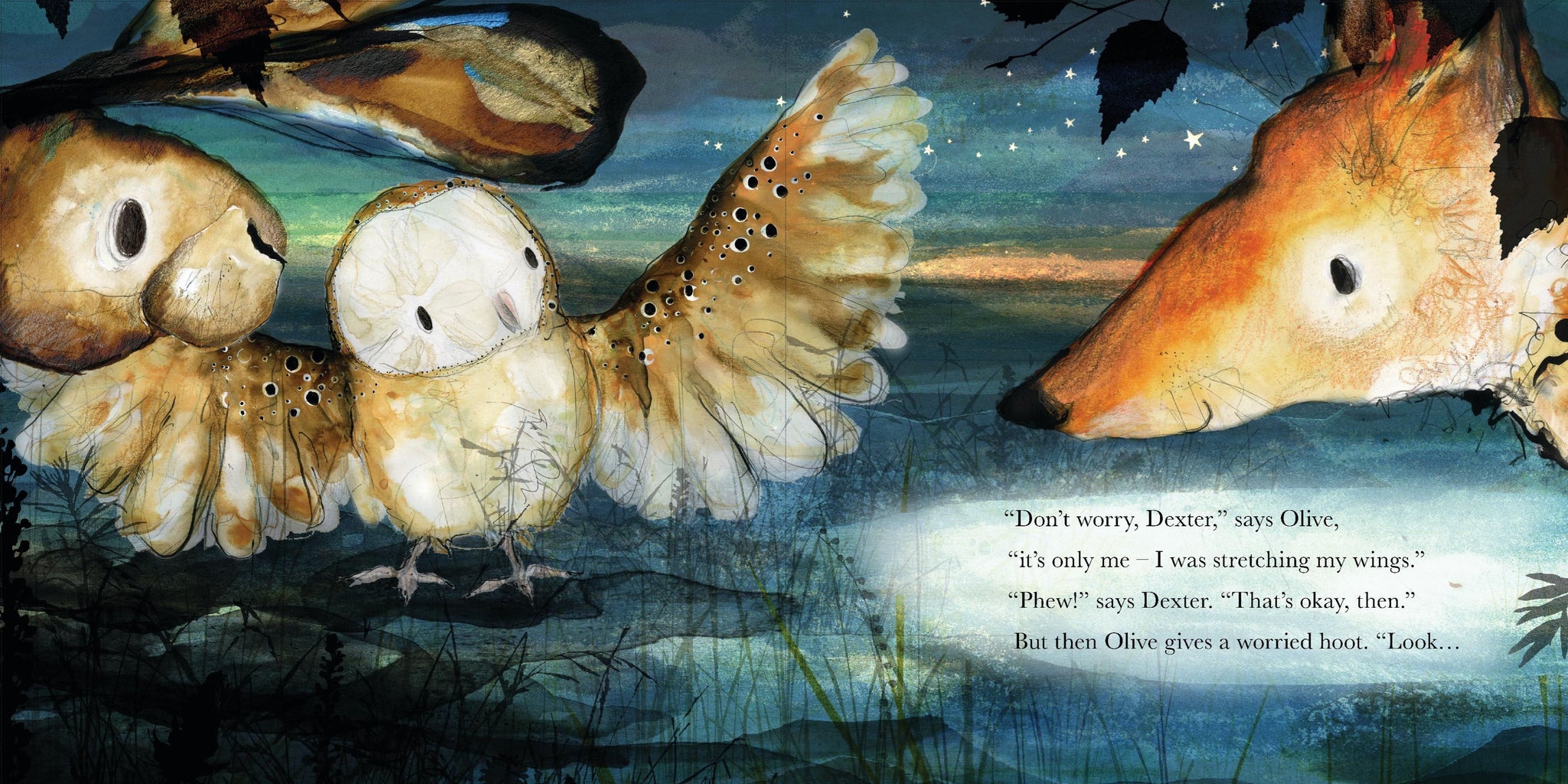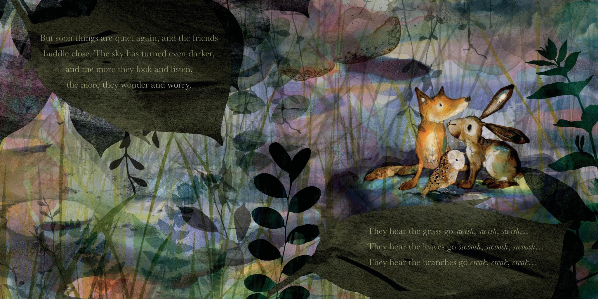 Molly the hare, Olive the owl and Dexter the fox love to watch the sun set in the garden. But as night falls, they notice strange shapes in the shadows and hear rustlings in their beloved oak tree. And the more they look and listen, the more they wonder and worry. This story explores big emotional themes with gentle humour and gorgeous artwork. Also in the series: Molly, Olive and Dexter; Molly, Olive and Dexter: The Guessing Game; Molly, Olive and Dexter: You Can't Catch Me!