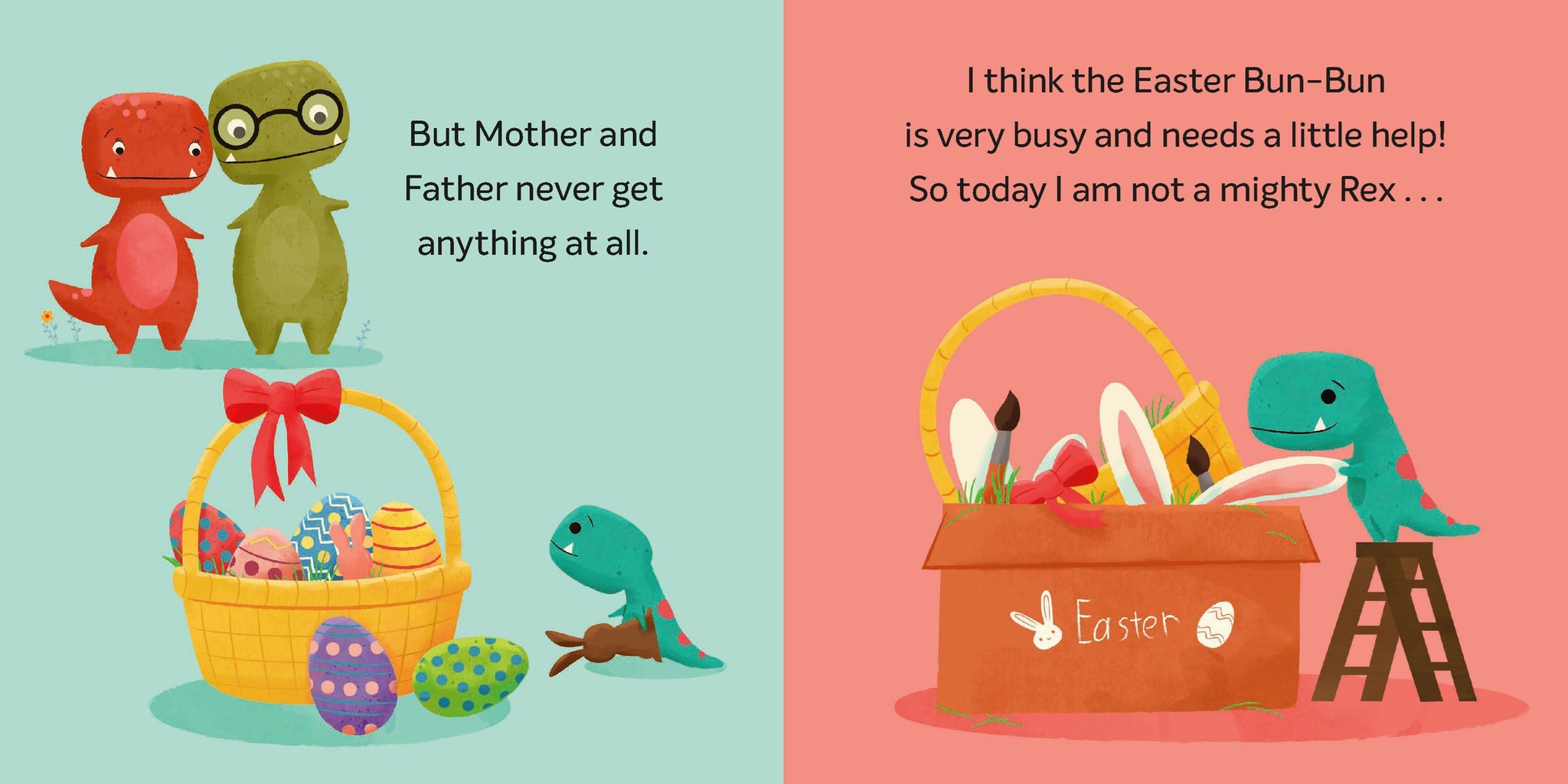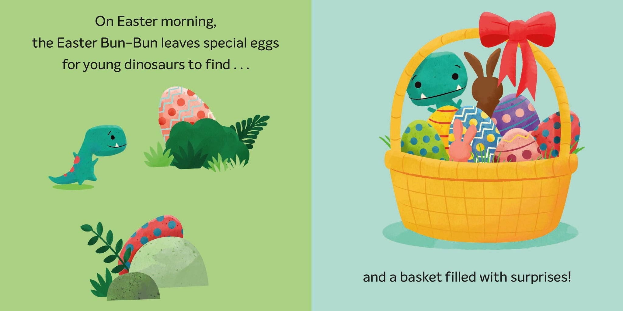 The Easter Bun-Bun visits young dinosaurs and leaves each of them a special treat - a basket filled with surprises! But when Tiny realizes that Mother and Father didn't get anything, he decides that today he is not a mighty rex but an Itty-Bitty Bun-Bun, and sets out to create a sweet surprise for them, too.