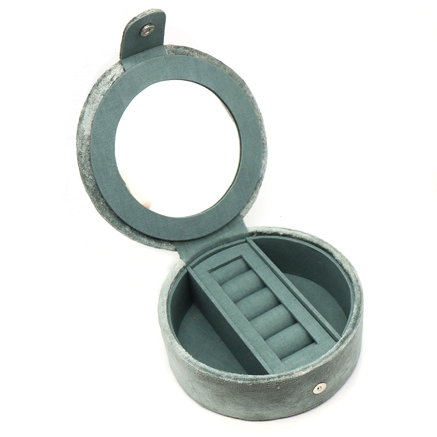 Seafoam Velvet Round Jewellery Box with Embroidered Highland Cow in Flower Crown