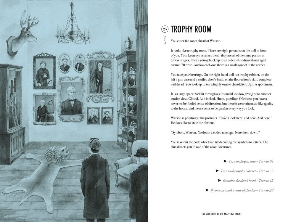The third title in this ingenious series of Sherlock Holmes Escape Books. Intrigued by an invitation from mathematician Charles Babbage to view his newly completed pioneering contraption, Holmes becomes imprisoned in a magnificent London villa, where tricks, traps and illusions aim to divert him from uncovering the true purpose of the reimagined Analytical Engine.
