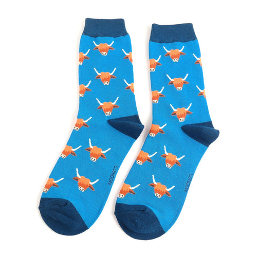 Miss Sparrow Highland Cows Ladies Socks Blue