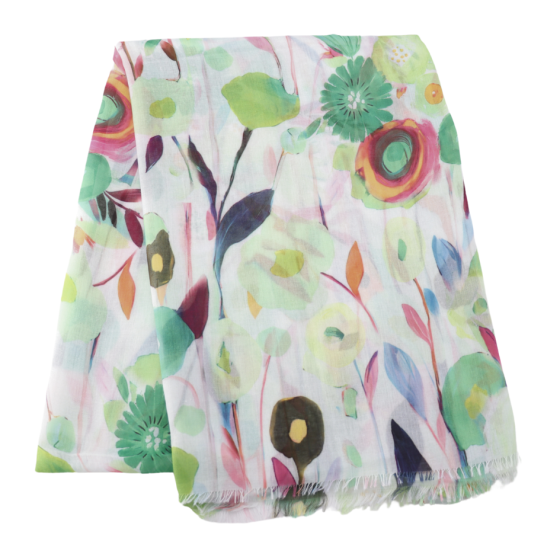 A beautiful lightweight summer scarf with a striped design in white and yellow. Perfect for spring or summer, this lightweight scarf can also be styled as a wrap, shawl or sarong.