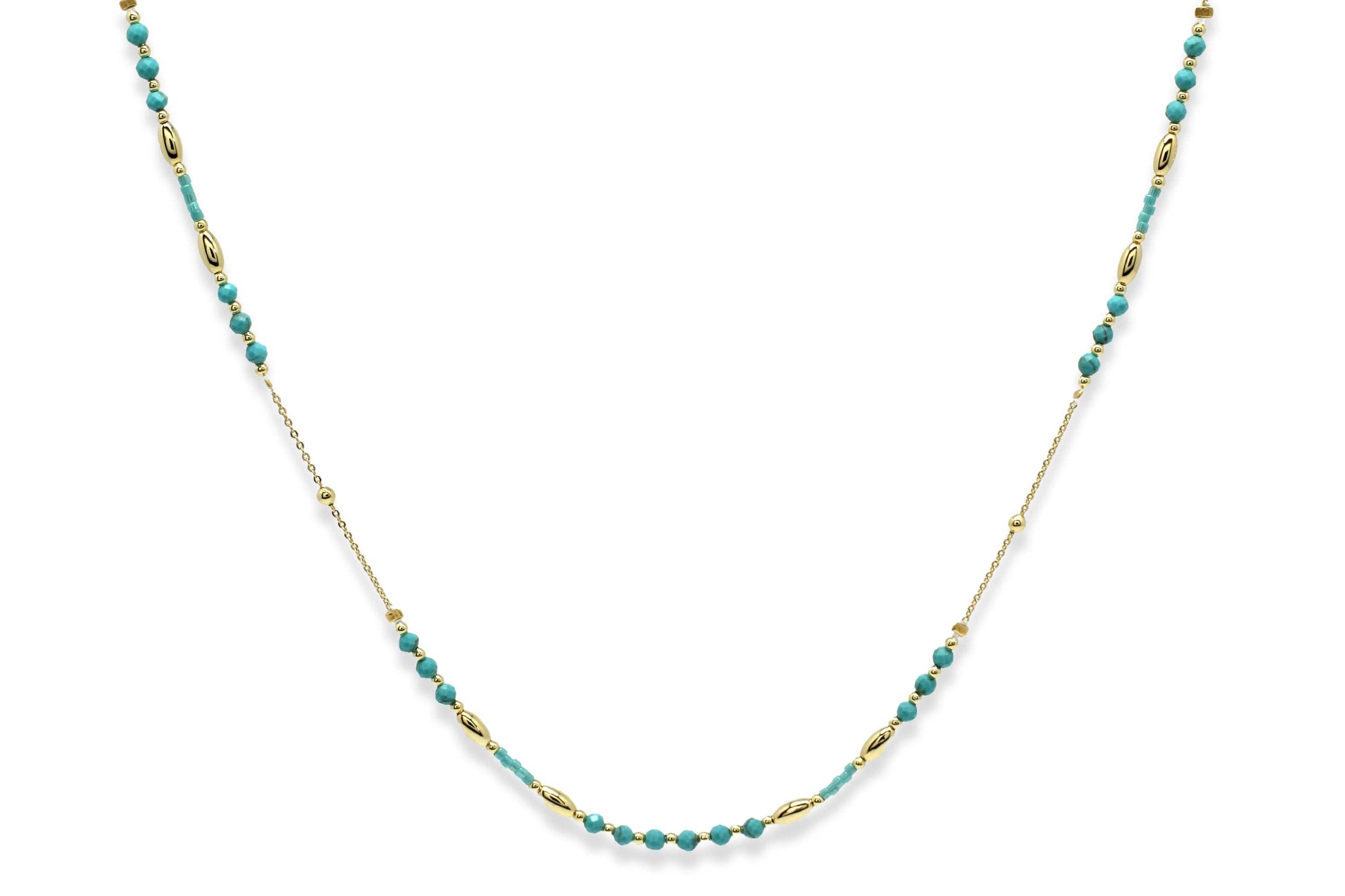 The Horus Turquoise Gold Gemstone necklace is made with a 14k gold plated chain. Size 50cm, plus 7.5cm extender chain.