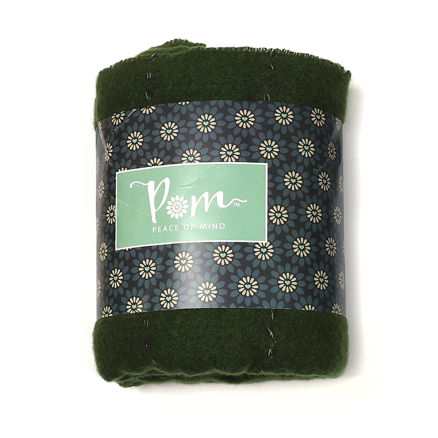 A soft and cosy medium weight pine green scarf with a running stitch design throughout and tassels at the end.