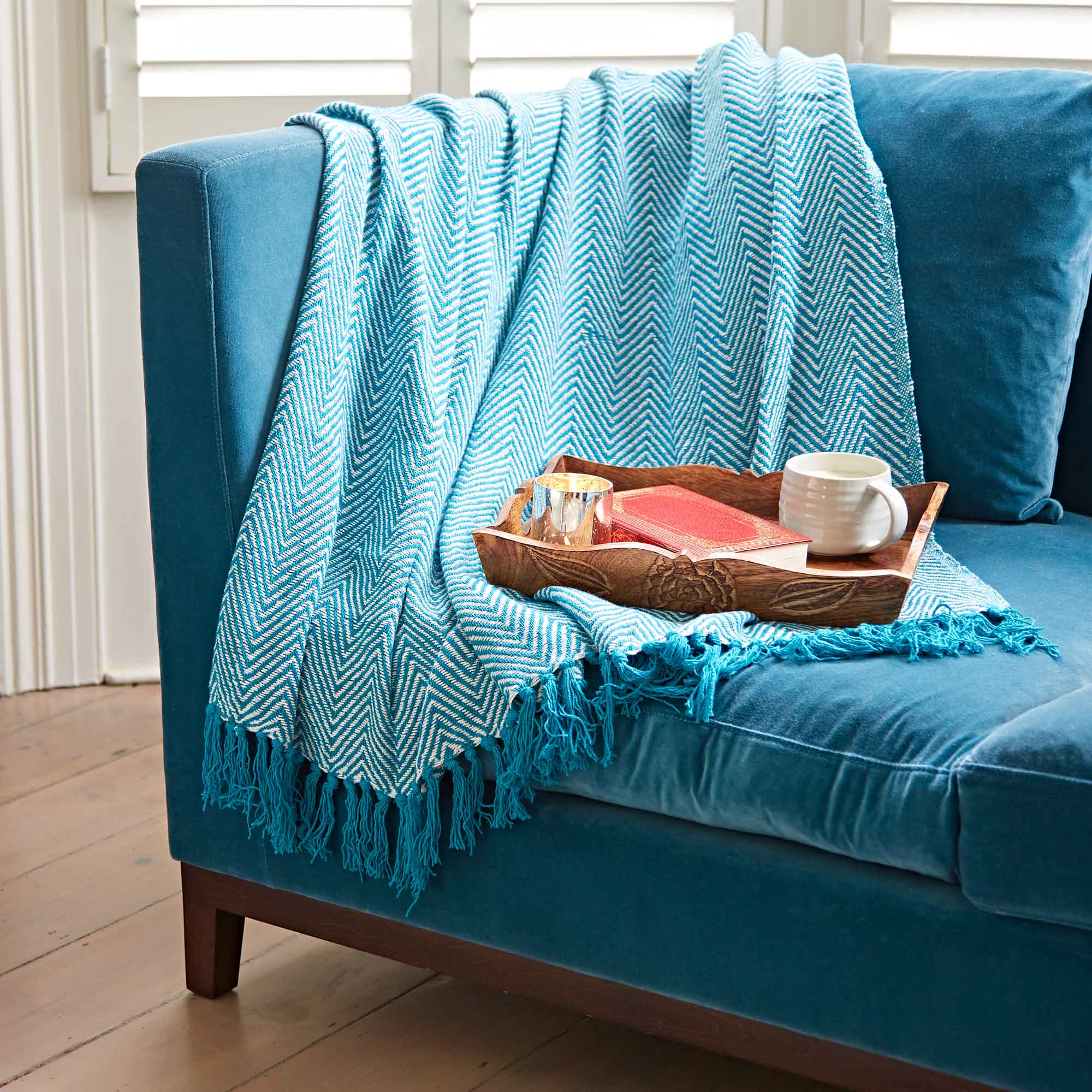 Recycled Cotton Woven Chevron Throw: Turquoise