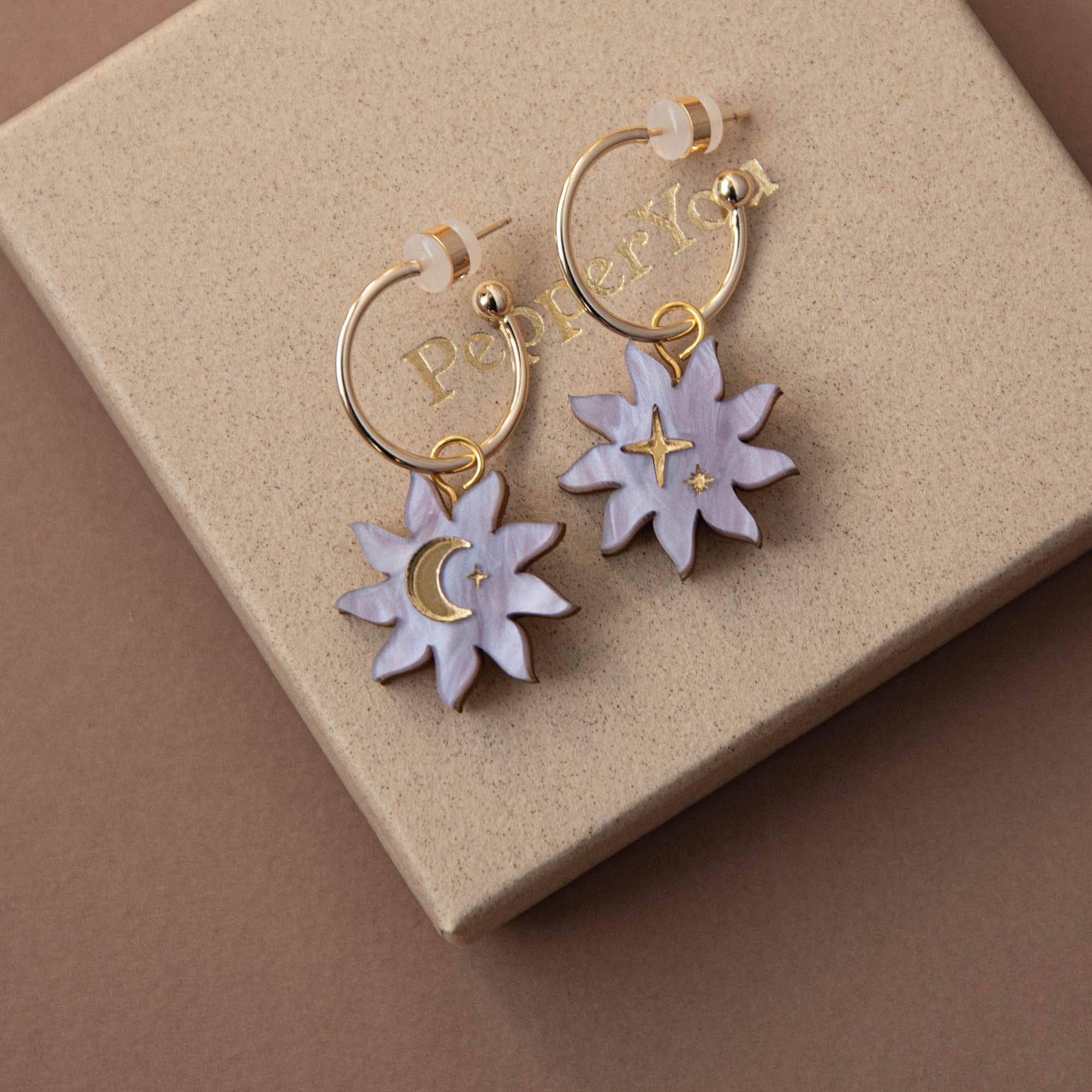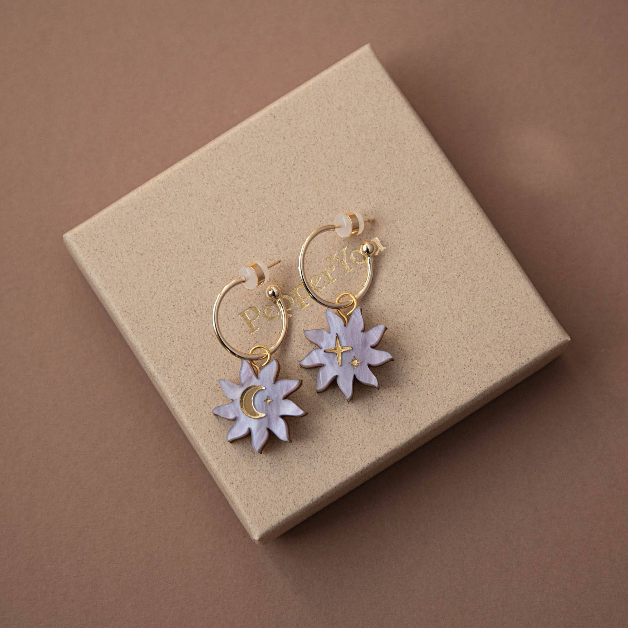 • Load image into Gallery viewer, Sleepy Sun Hoops - Lilac Marble