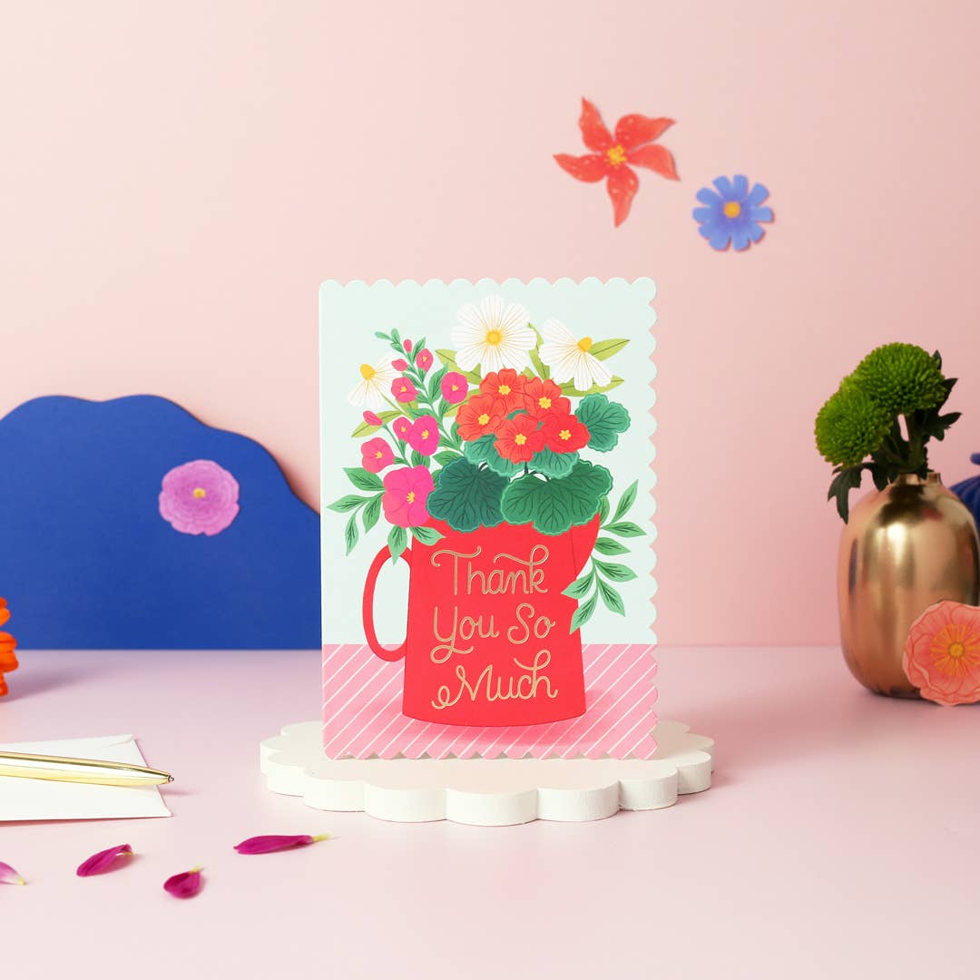 The hand-lettered 'Thank You So Much' greeting has been stamped with a luxe gold foil and it's been finished with a scalloped edge detail for added prettiness.