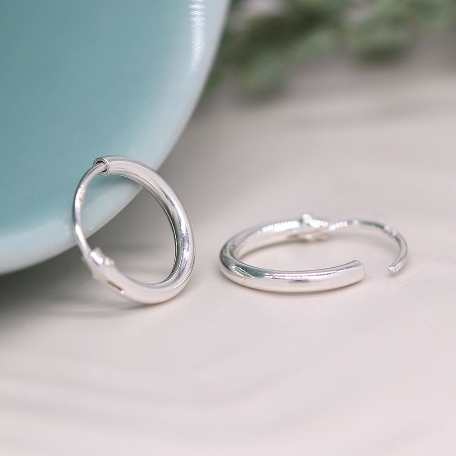 Petite sterling silver creole hoop earrings in a classic sleeper design.
